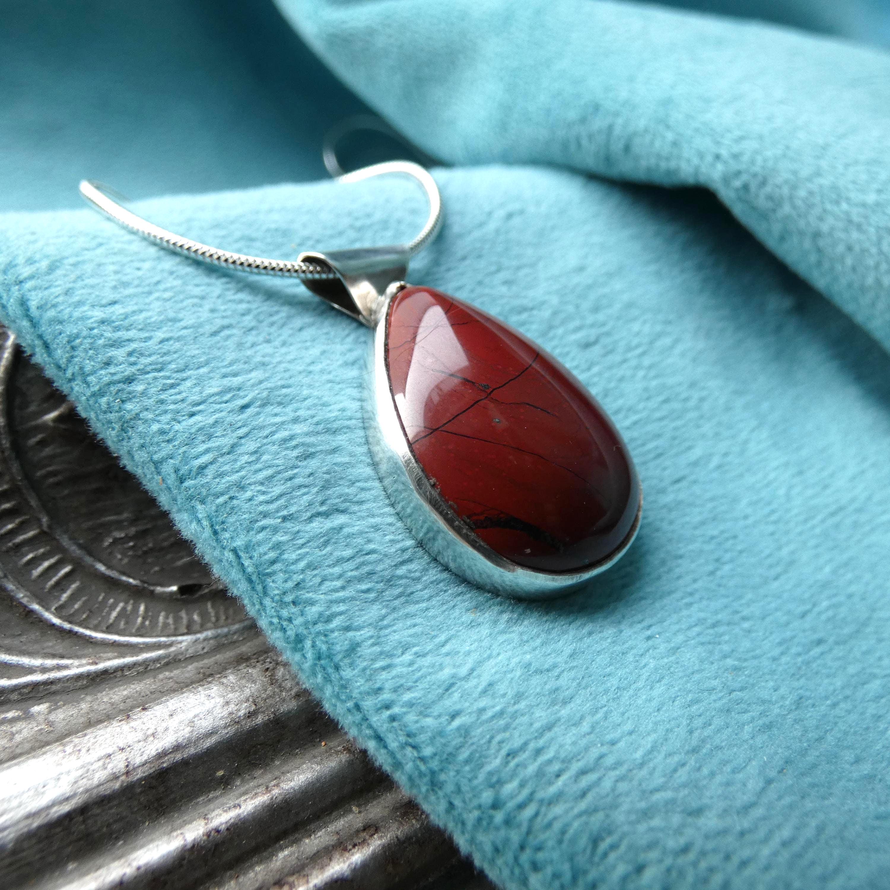 This beautiful large dark red Jasper natural gemstone is set in a classic bezel setting. It is handmade from sterling silver and one of a kind item. It has a simple design so the gemstone stays dominant.