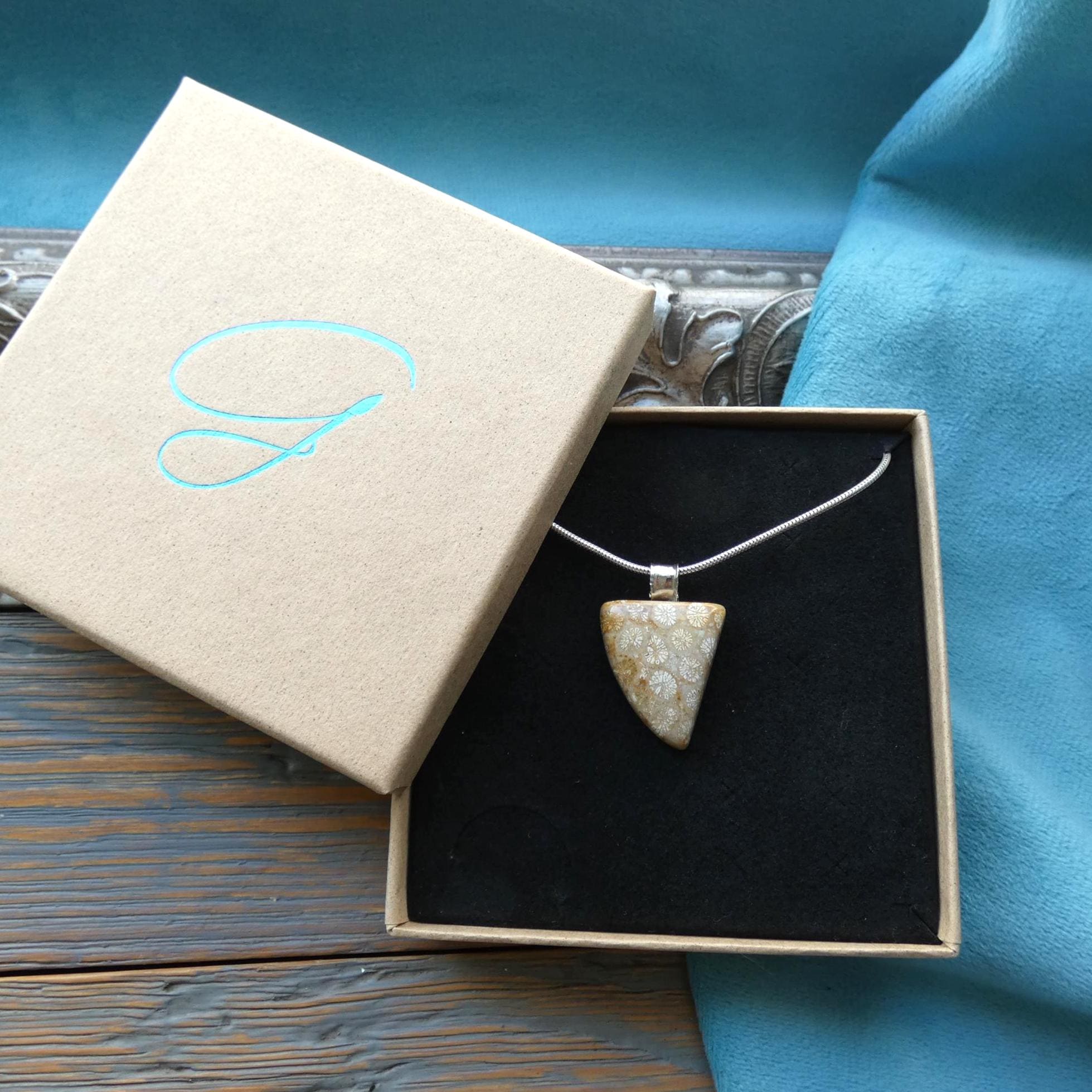 THE PACKAGING is almost 100% plastic free, apart from the small foam insert in some jewellery boxes. It will arrive to you in the most eco-friendly way possible making the least impact on our beautiful planet.